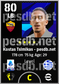 . Kostas Tsimikas is a Left Back footballer from Greece who plays for Roma Gr in eFootball 2026.
