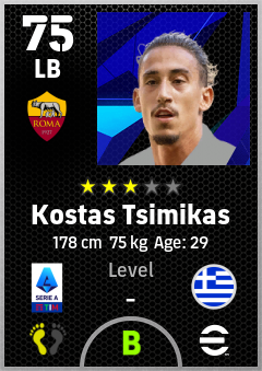 . Kostas Tsimikas is a Left Back footballer from Greece who plays for Roma Gr in eFootball 2026.