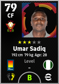 . Umar Sadiq is a Center Forward footballer from Nigeria who plays for Valencia Bn in eFootball 2026.