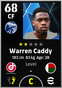 . Warren Caddy is a Center Forward footballer from Madagascar who plays for Randers B in eFootball 2026.