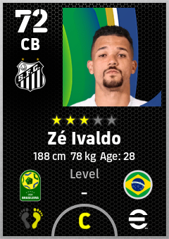 . Zé Ivaldo is a Center Back footballer from Brazil who plays for Santos Fc in eFootball 2026.