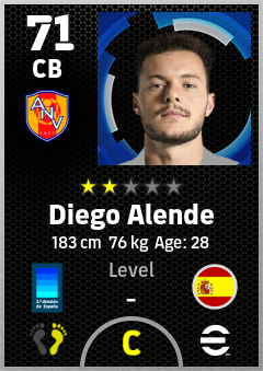 . Diego Alende is a Center Back footballer from Spain who plays for Andorra La Vella Aar in eFootball 2026.