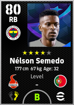 . Nélson Semedo is a Right Back footballer from Portugal who plays for Fenerbahçe Sk in eFootball 2026.