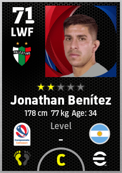 . Jonathan Benítez is a Left Wing Forward footballer from Argentina who plays for Santiago Rbv in eFootball 2026.