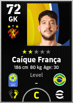 . Caíque França is a Goalkeeper footballer from Brazil who plays for Recife Pv in eFootball 2026.