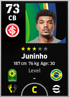 . Juninho is a Center Back footballer from Brazil who plays for Sc Internacional in eFootball 2026.