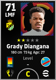 . Grady Diangana is a Left Midfielder footballer from Congo Dr who plays for Elche Bv in eFootball 2026.