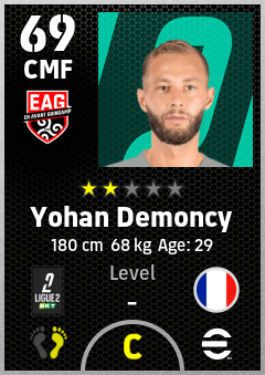 . Yohan Demoncy is a Center Midfielder footballer from France who plays for En Avant Guingamp in eFootball 2026.