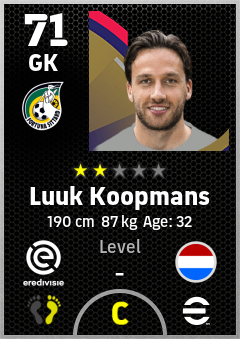 . Luuk Koopmans is a Goalkeeper footballer from Netherlands who plays for Fortuna Sittard in eFootball 2026.