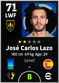 . José Carlos Lazo is a Left Wing Forward footballer from Spain who plays for Albacete Bn in eFootball 2026.