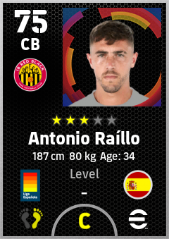 . Antonio Raíllo is a Center Back footballer from Spain who plays for Mallorca Rn in eFootball 2026.