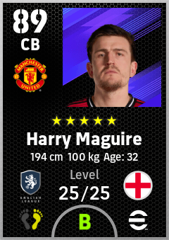 .Harry Maguire is a Center Back footballer from England who plays for Manchester United in eFootball 2026.