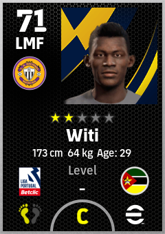 . Witi is a Left Midfielder footballer from Mozambique who plays for Cd Nacional in eFootball 2026.