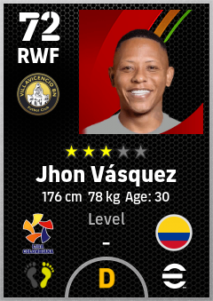 . Jhon Vásquez is a Right Wing Forward footballer from Colombia who plays for Villavicencio Bn in eFootball 2026.