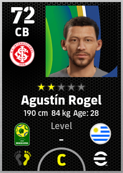 . Agustín Rogel is a Center Back footballer from Uruguay who plays for Sc Internacional in eFootball 2026.