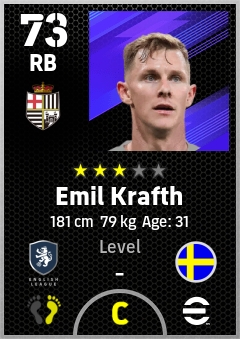 . Emil Krafth is a Right Back footballer from Sweden who plays for Newcastle Wb in eFootball 2026.