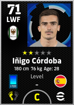 . Iñigo Córdoba is a Left Wing Forward footballer from Spain who plays for Burgos Nb in eFootball 2026.