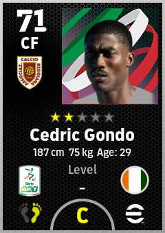 . Cedric Gondo is a Center Forward footballer from Côte D'ivoire who plays for Reggio Emilia G in eFootball 2026.