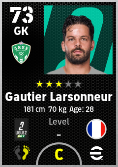 . Gautier Larsonneur is a Goalkeeper footballer from France who plays for As Saint-Étienne in eFootball 2026.