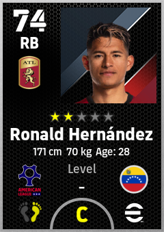 . Ronald Hernández is a Right Back footballer from Venezuela who plays for Atlanta Rb in eFootball 2026.