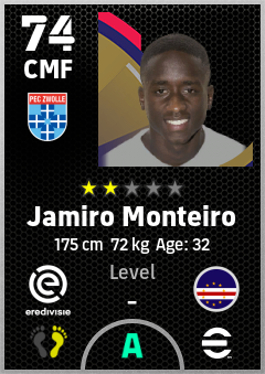 . Jamiro Monteiro is a Center Midfielder footballer from Cabo Verde who plays for Pec Zwolle in eFootball 2026.