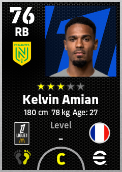 . Kelvin Amian is a Right Back footballer from France who plays for Fc Nantes in eFootball 2026.