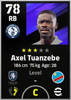. Axel Tuanzebe is a Right Back footballer from Congo Dr who plays for Burnley Rb in eFootball 2026.
