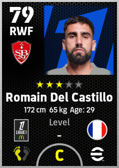 . Romain Del Castillo is a Right Wing Forward footballer from France who plays for Stade Brestois 29 in eFootball 2026.