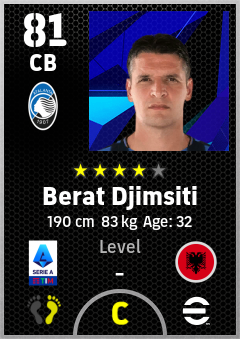 . Berat Djimsiti is a Center Back footballer from Albania who plays for Atalanta Bc in eFootball 2026.