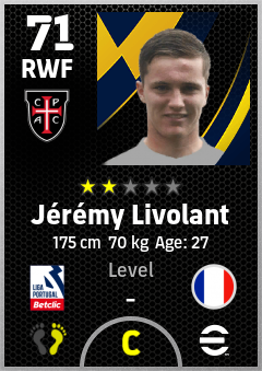 . Jérémy Livolant is a Right Wing Forward footballer from France who plays for Casa Pia Ac in eFootball 2026.