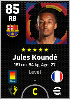 . Jules Koundé is a Right Back footballer from France who plays for Fc Barcelona in eFootball 2026.
