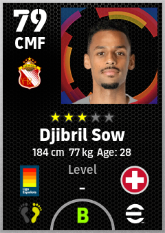 . Djibril Sow is a Center Midfielder footballer from Switzerland who plays for Sevilla Nervión Br in eFootball 2026.