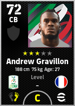 . Andrew Gravillon is a Center Back footballer from France who plays for Pescara Ba in eFootball 2026.
