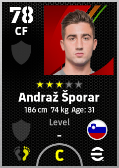 . Andraž Šporar is a Center Forward footballer from Slovenia who plays for Free in eFootball 2026.