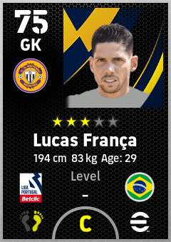 . Lucas França is a Goalkeeper footballer from Brazil who plays for Cd Nacional in eFootball 2026.