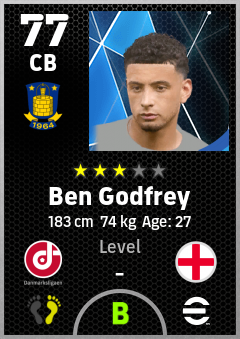 . Ben Godfrey is a Center Back footballer from England who plays for Brøndby Gb in eFootball 2026.