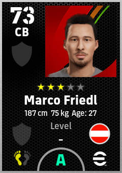 . Marco Friedl is a Center Back footballer from Austria who plays for Free in eFootball 2026.