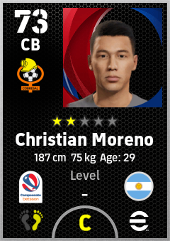 . Christian Moreno is a Center Back footballer from Argentina who plays for El Salvador Bn in eFootball 2026.