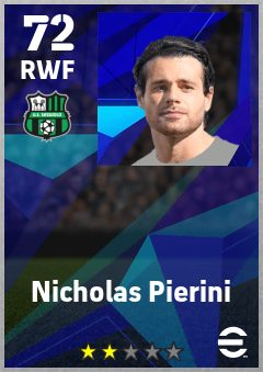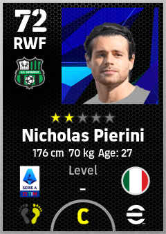 . Nicholas Pierini is a Right Wing Forward footballer from Italy who plays for Sassuolo Nv in eFootball 2026.