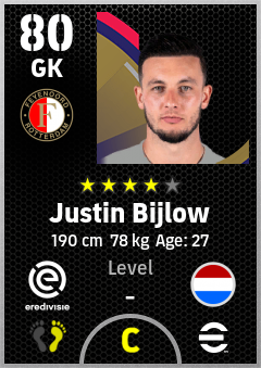 . Justin Bijlow is a Goalkeeper footballer from Netherlands who plays for Feyenoord in eFootball 2026.