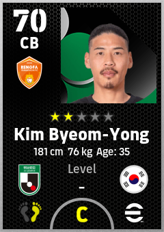 . Kim Byeom-Yong is a Center Back footballer from Korea Republic who plays for Renofa Yamaguchi Fc in eFootball 2026.