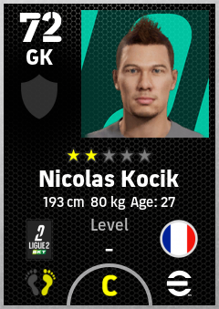 . Nicolas Kocik is a Goalkeeper footballer from France who plays for Le Mans Fc in eFootball 2026.