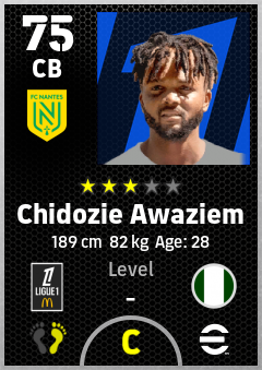 . Chidozie Awaziem is a Center Back footballer from Nigeria who plays for Fc Nantes in eFootball 2026.