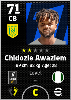 . Chidozie Awaziem is a Center Back footballer from Nigeria who plays for Fc Nantes in eFootball 2026.