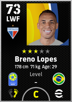 . Breno Lopes is a Left Wing Forward footballer from Brazil who plays for Fortaleza Avb in eFootball 2026.