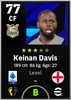 . Keinan Davis is a Center Forward footballer from England who plays for Udinese Calcio in eFootball 2026.