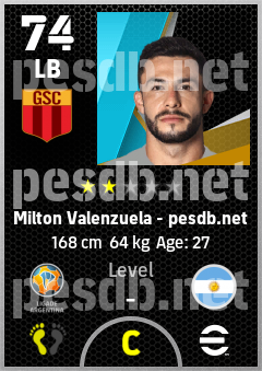 . Milton Valenzuela is a Left Back footballer from Argentina who plays for Avellaneda R in eFootball 2026.