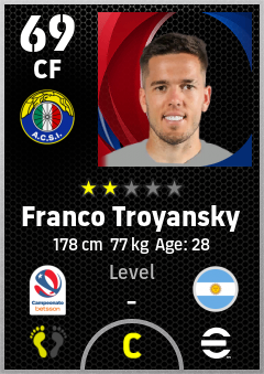 . Franco Troyansky is a Center Forward footballer from Argentina who plays for Santiago Vb in eFootball 2026.