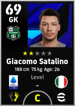 . Giacomo Satalino is a Goalkeeper footballer from Italy who plays for Sassuolo Nv in eFootball 2026.
