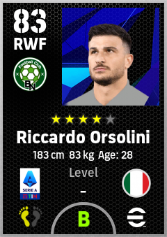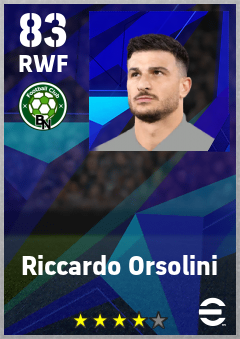 . Riccardo Orsolini is a Right Wing Forward footballer from Italy who plays for Bologna Rb in eFootball 2026.